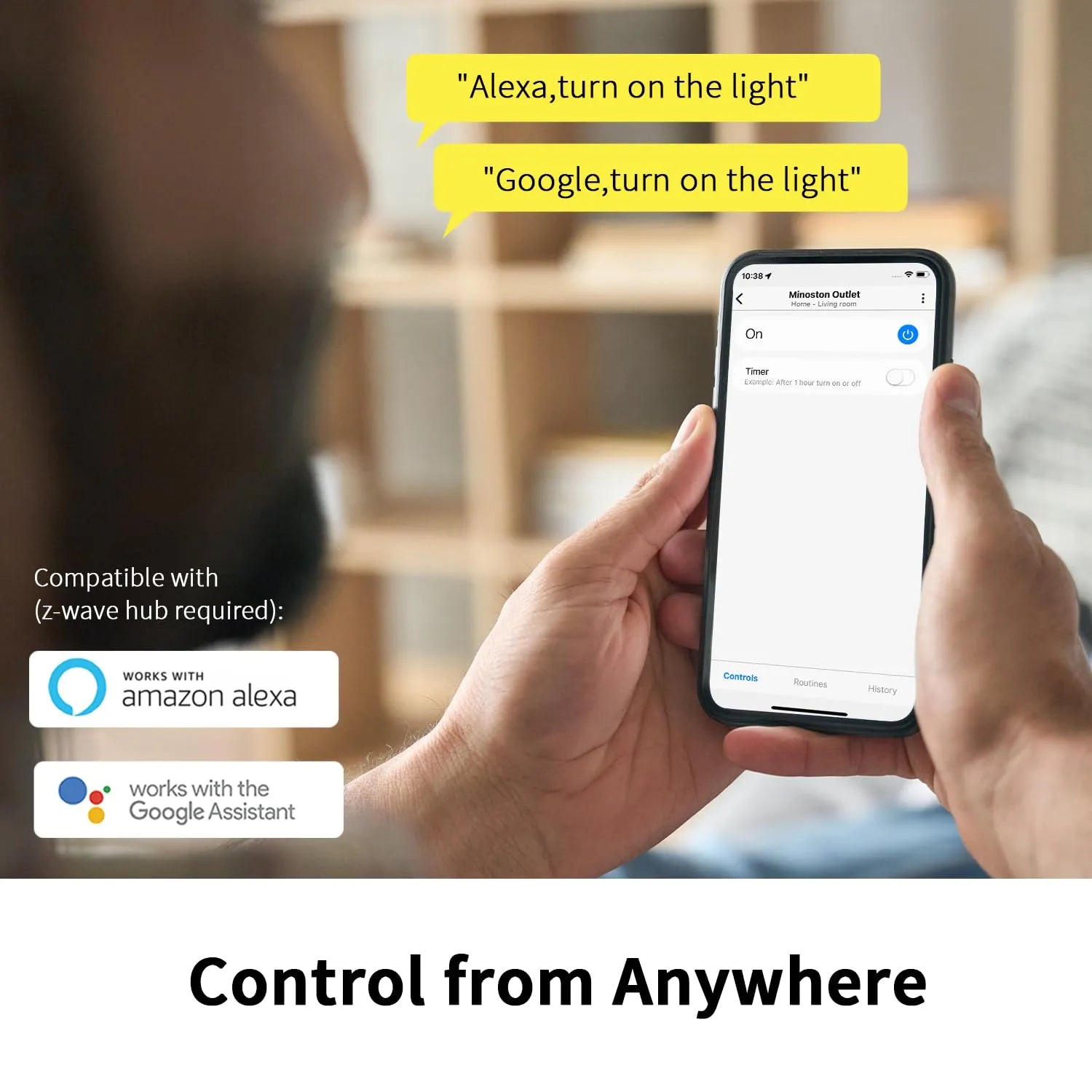 - Remote and Voice control: A wide range of load types are supported, such as lamps and small appliances, and can be controlled from anywhere and at any time via your mobile devices. Hands-free voice control by Alexa, like: “Alexa, turn on the coffee maker”. Home automation is from a little Z-Wave Plug to control small appliances that you want.